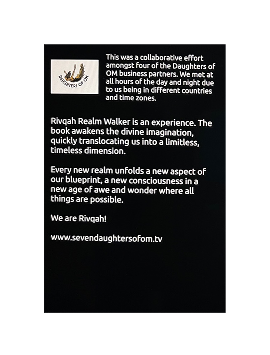 Rivqah Realm Walker is an experience. The book awakens the divine imagination, quickly translocating us into a limitless, timeless dimension. Every new realm unfolds a new aspect of our blueprint, a new consciousness in a new age of awe and wonder where all things are possible. We are Rivqah!